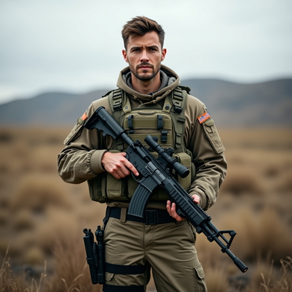 AI से “full combat gear,” “field environment,” “dust on uniform,” “sweat on face,” और “hard sunlight or overcast sky” के लिए कहें। हथियार के प्रकार और उसे कैसे पकड़ा या टांगा गया है, यह स्पष्ट करें। गंभीर, केंद्रित भाव और कम depth of field की मांग करें, जो बैकग्राउंड को ब्लर करे लेकिन गियर को शार्प रखे। साफ-सुथरे, चमकदार, फैशन-स्टाइल लुक से बचें। आपको घिसावट, टेक्सचर और छोटी खामियाँ चाहिए। यही चीज़ इमेज को कॉस्ट्यूम नहीं, बल्कि वास्तविक डिप्लॉयमेंट जैसा महसूस कराती है।