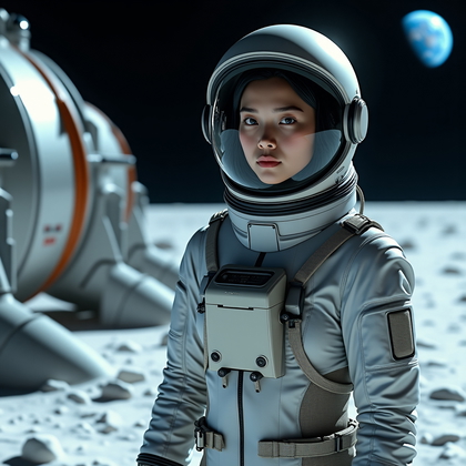 月面基地のイメージは、距離と静けさを受け入れたときに印象深いものになります。広大な、あるいは閉ざされた環境に一人だけいる人物は、感情的な力を生み出します。これは弱さではありません。現実味です。孤立はこの舞台設定の一部であり、優れたイメージはそれを隠すのではなく活用します。