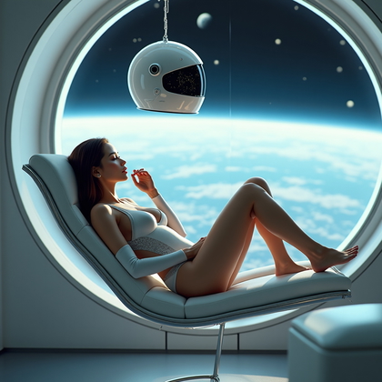 Эта концепция опирается на научную сторону космоса. Человек сидит или стоит в тусклом, технологичном окружении с экранами, мягким свечением или панелями управления. Настроение сосредоточенное и серьезное. Инструменты ИИ хорошо реагируют на эту тему, потому что она опирается на образы центров управления полётами и лабораторий, которые часто встречаются в обучающих данных.